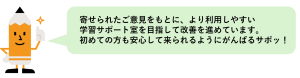 - 本結果をふまえ、よりよい学習支援を提供できるよう、改善に努めていきます。